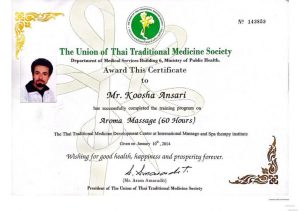 کوروش انصاری ماسور حرفه ای با علاقه ای که به حرفه ماساژوری داشت و تشویق دوست صمیمی اش و با انگیزه ادامه این کار به صورت حرفه ای، مدرکش را از اتحادیه بین المللی ماساژ تایلند دریافت می نماید. از سال ۹۰ به عنوان ماسور در مجموعه های آدونیس، کاج و نیلوفر آبی و همچنین بصورت خصوصی در این حرفه برای خودش کار آفرینی نموده و شناخته می شود. وی معتقد است در این روزگار فشار و استرس شغلی و خانوادگی به حدی افزایش یافته که دیگر جامعه به این حرفه نگاه لوکس و تزیینی ندارد و به تدریج به عنوان عملی در راستای سبک زندگی سالم مورد پذیرش نسل جوان قرار گرفته و در عمل نیز جایگزین مشت و مال سنتی شده است.